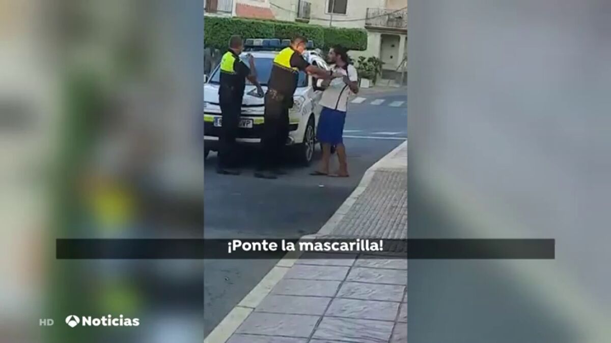 Como se puede ver en el vídeo superior, el joven insulta a los agentes mientras la persona que graba le pide que "esté tranquilo". Además, durante el arresto se puede ver cómo le arranca la mascarilla a unos de los agentes y caen al suelo. Es entonces cuando escupe al policía y finalmente es arrestado.