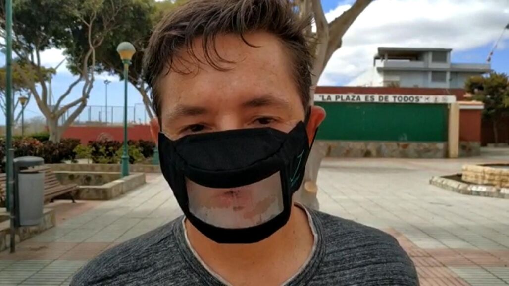 Marcos Lechet, es un chico sordo desde los cinco años, y este jueves entrega al ministro de Sanidad, Salvador Illa, más de 70.000 firmas que ha recogido solicitando la homologación de mascarillas transparentes que permitan la lectura labial.