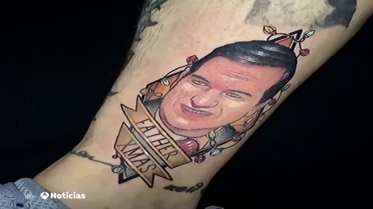 En el tatuaje del joven, el alcalde de Vigo, Abel Caballero, aparece con una sonrisa y rodeado de luces de Navidad.