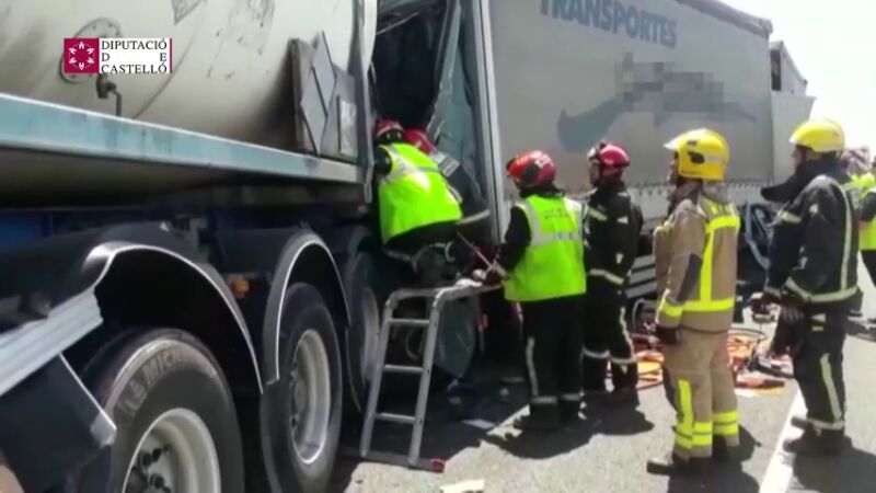 Un muerto en un accidente de tráfico con cuatro camiones implicados en Vinarós