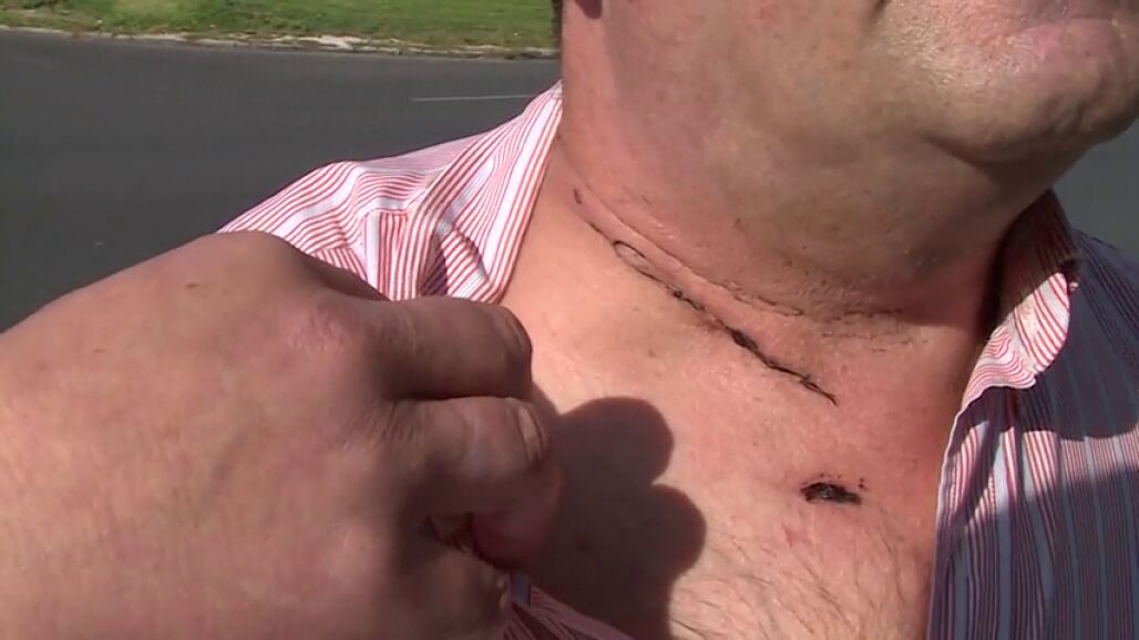 El agredido sufrió un corte de 4 centímetros que le diseccionó la yugular y la carótida. La atracadora se encuentra en prisión sin fianza y se declara insolvente.
