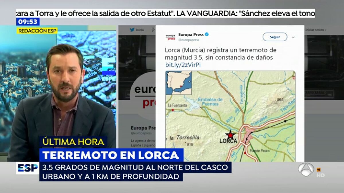 El sureste de la comunidad murciana se ha visto sacudido por un terremoto de 3.5 grados de magnitud sobre las 9 de la mañana de este jueves. El Instituto Geográfico Nacional ha proporcionado los datos del movimiento sísmico, situándolos a un kilómetro de profundidad en la ciudad de Lorca.