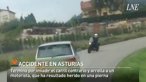 Es uno de los accidentes que se han registrado en esta operación de salida y retorno de vacaciones. Un todoterreno circula dando bandazos por una carretera secundaria de Oviedo y termina por invadir el carril contrario y arrollar a un motorista. Toda la secuencia del accidente fue captada por la cámara de otro vehículo.