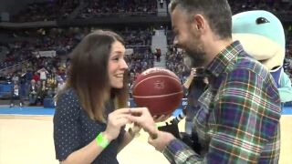O una pareja que se dispone a disfrutar de un partido de basket y el foco de público y jugadores se centra de repente en la novia, en lugar de seguir el marcador del partido.