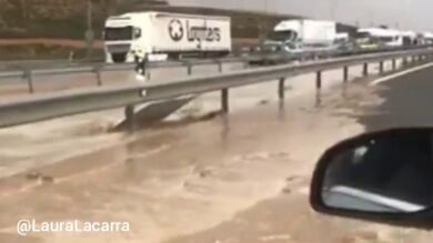 Una fuerte tromba de agua inunda la autovía y varias localidades de Zaragoza