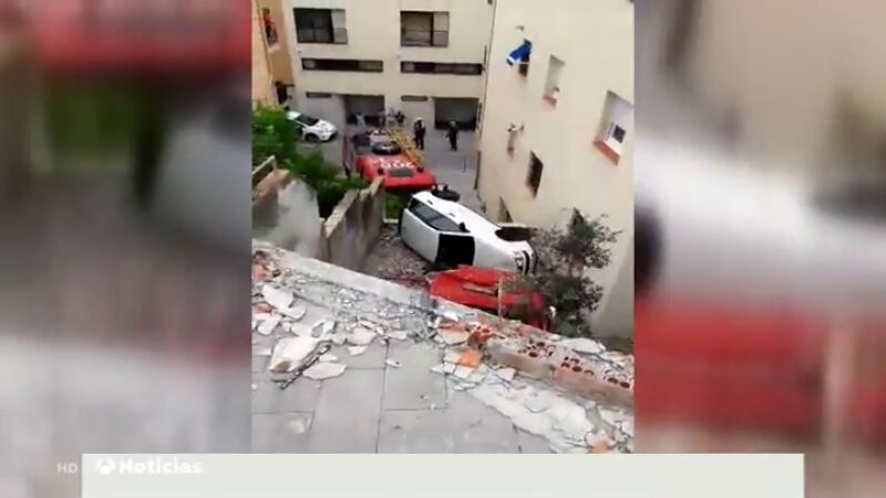 Por suerte no había nadie allí abajo. El conductor pudo llegar al hospital por su propio pie y está leve. En la caída ha provocado daños en cuatro vehículos más y en un muro.