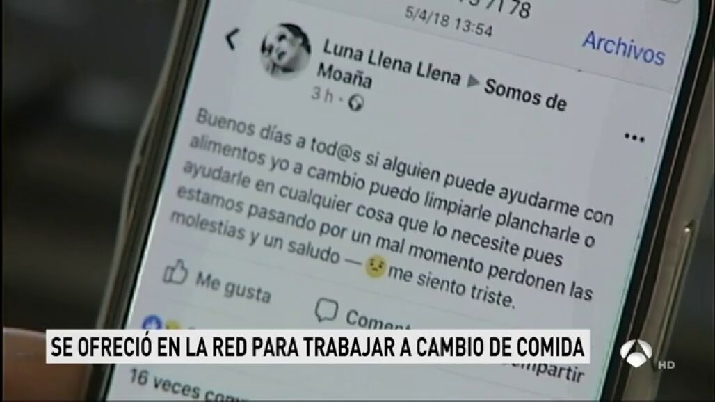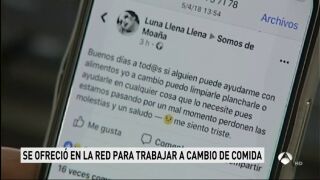 Victoria, una vecina de Moalla de 50 años, era parada de larga duración y fue desahuciada de su vivienda. Entonces, recurrió a las redes sociales para pedir trabajo a cambio de comida.