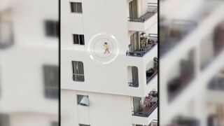 Una niña corretea peligrosamente por la cornisa de un edificio de apartamentos en Adeje