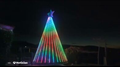 No querían un árbol de Navidad al uso y lo han conseguido. Una pareja de Gondomar, en Pontevedra, ha sorprendido instalando un árbol de Navidad de 6 metros de altura en el jardín. El resultado es espectacular.