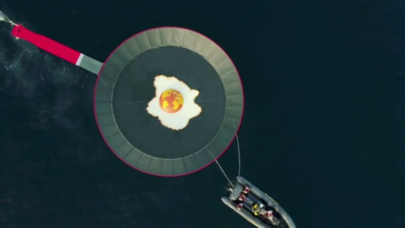 En un comunicado, fuentes de la organización ecologista han señalado que la sartén, de 12 metros de diámetro, 113 metros cuadrados de superficie y más de 500 kilos de peso, tiene en su interior una reproducción de un huevo frito en cuya yema puede verse un mapa del mundo con el que se simboliza que la crisis climática "dejará un planeta frito si no se toman medidas urgentes".