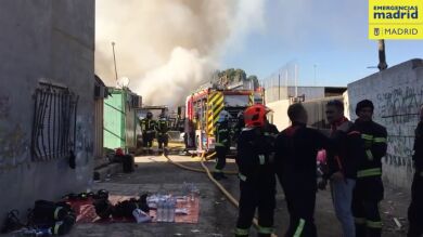 Una veintena de familias desalojadas por un incendio en varias infraviviendas de la Cañada Real en Madrid