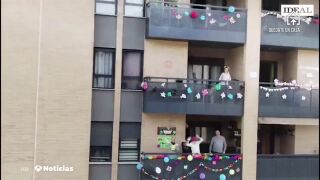 En la urbanización Ciudad de la Luz, en Zona Norte de Granada, viven unas 300 familias. Muchos ni se conocían antes del confinamiento por el coronavirus, o se saludaban en el rellano, pero ahora hay una actividad que les ha llevado a unirse: macrofiestas de balcón dominicales y temáticas.