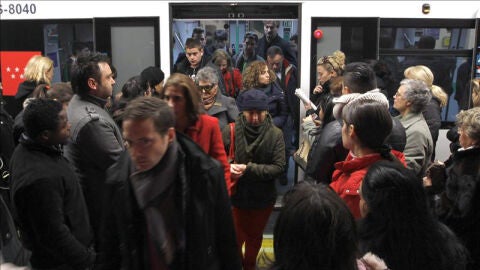 Debido al corte por obras en la línea 8, fuentes de Metro de Madrid han informado a antena3.com de la presencia de "personal de refuerzo" que hace posible "que los trenes salgan más rápido, la gente no se acumule en una sola puerta y no se vea mermada la frecuencia de los convoyes".
