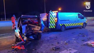 Varios operarios heridos en la carretera al chocar un turismo contra dos coches en Madrid