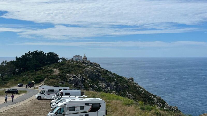 La historia se repite en la Costa da Morte y, especialmente, en el concello de Fisterra. Al faro del fin del mundo llegan cada día centenares de peregrinos y visitantes, para culminar el camino o deleitarse con sus increibles vistas y paraje. Pero, desde hace unos años, cada verano Fisterra también se llena de autocaravanas.