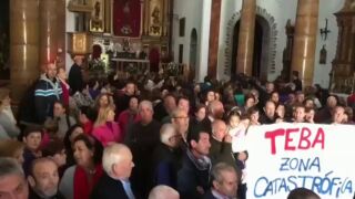 Vecinos de los municipios malagueños de Teba y Campillos, que el pasado fin de semana sufrieron las consecuencias de las fuertes precipitaciones, han pasado su primera noche de encierro en el interior de la iglesia y del polideportivo, respectivamente, como medida de protesta por la decisión del Gobierno central de no declarar el pasado viernes la localidad como zona catastrófica, pese a los daños millonarios ocasionados.