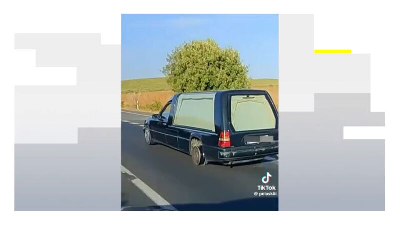 En este caso, que se tratara de un coche fúnebre ha causado aún más revuelo, aunque no se ha podido confirmar si estaba prestando servicio en ese momento. Las cortinas del compartimento trasero permanecían cerradas, lo que impide saber si transportaba un féretro.