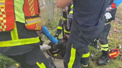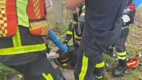 El vídeo del complicado rescate de Brownie, un perro de raza tekel atrapado en una alcantarilla a seis metros de profundidad