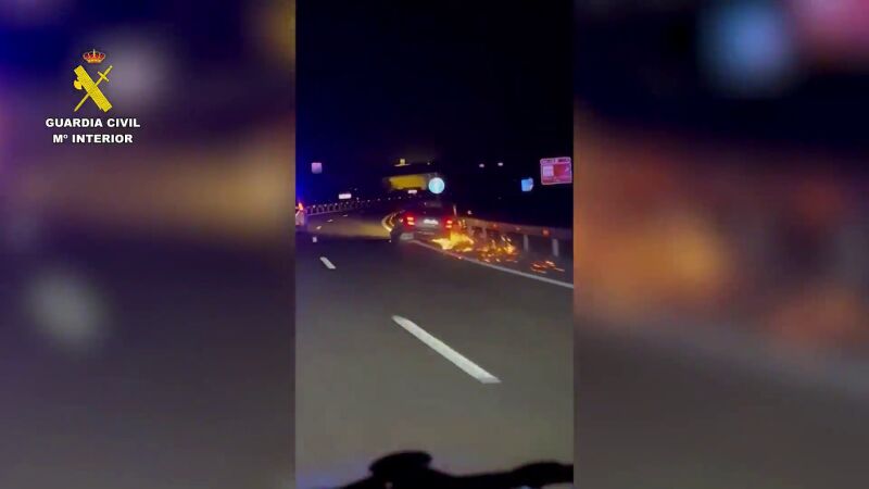 El conductor circuló durante 33 kilómetros sin dos ruedas del coche. La Guardia Civil lo detuvo tras agredirles y negarse a realizarse un test de alcohol y drogas.