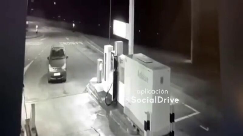 Las cámaras de grabación de la gasolinera captaron el momento. En ellas se ve cómo el vehículo está parado al lado de un surtidor de gasolina y, al momento, comienza a ir hacia atrás alejándose de la gasolinera.