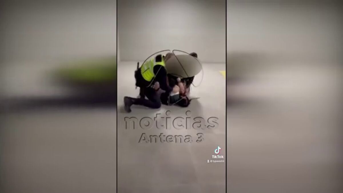 Le dicen a la chica que si no les entrega la documentación, se la quitarán ellos, y, ante la resistencia de la joven, acaban empujándola contra la pared de la estación para derribarla y posteriormente retenerla entre ambos en el suelo. Mientras, la chica grita y forcejea y pide que la liberen, pero los agentes no la escuchan y continúan increpándola: "¿Qué te crees? Mierda, que eres una mierda ¿Qué te crees? Estate quietecita", le dicen los agentes.