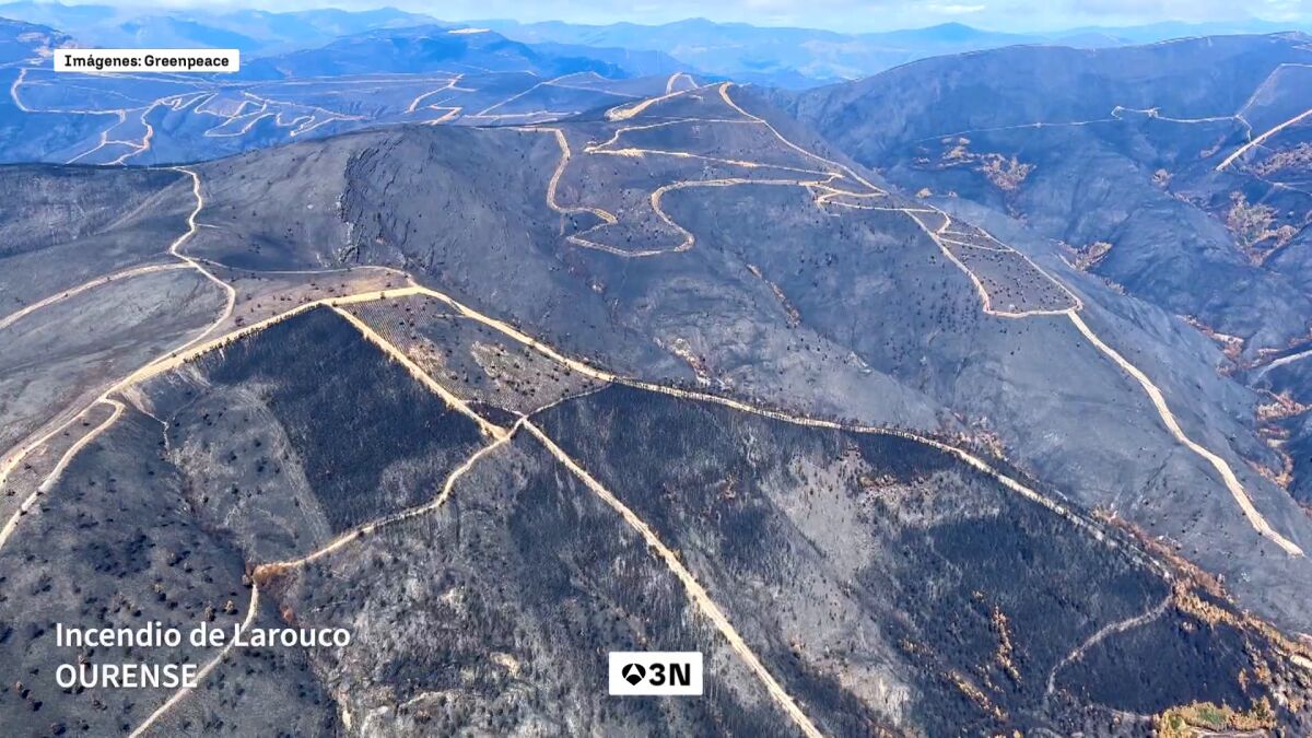 La organización Greenpeace ha recogido los estragos de los incendios en imágenes tomadas desde el cielo. La comarca de Sanabria (Zamora), El Bierzo (León) o Larouco (Ourense) son algunos de los lugares capturados.