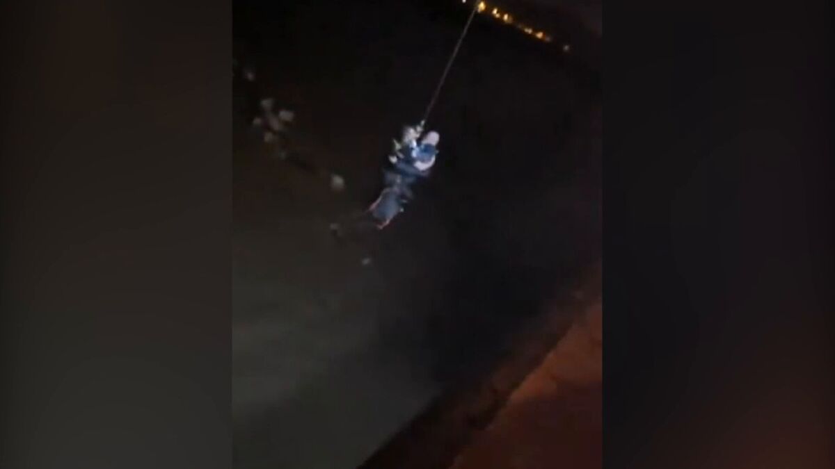 VÍDEO | El espectacular rescate de un cabo de la UME a dos personas atrapadas en un puente por la DANA