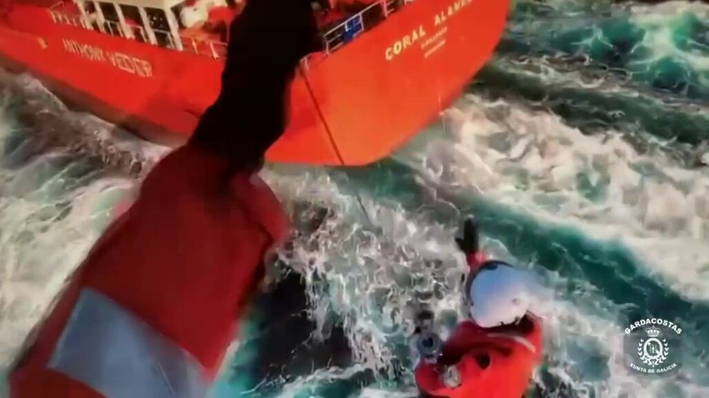 Espectaculares imágenes las que han llegado desde Galicia y que ha compartido el servicio de Guardacostas gallego a través de sus redes sociales. Y es que este jueves tuvieron que acudir a la llamada de auxilio de un tripulante de un barco mercante.