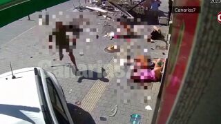 Unas imágenes de seguridad captaron el terrible accidente que tuvo lugar ayer en Corralejo, Fuerteventura. Un coche se empotró contra una terraza llena de gente y dejó ocho heridos, cinco de ellos en estado grave. El conductor, que era un turista británico, ha dado negativo en alcohol y drogas.
