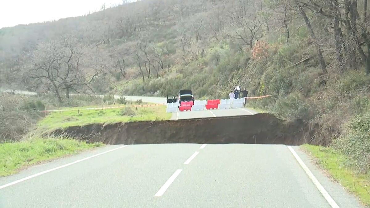 En Cáceres, el hundimiento de la calzada ha provocado que una mujer que circulaba por ella cayese a ese gran socavón. Por suerte, ha sido rescatada ilesa. Es ya una de las imágenes de este tren de borrascas.