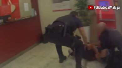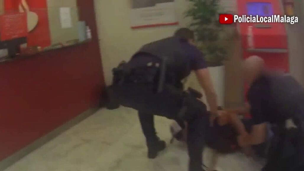 Vídeo: la Policía sorprende a un hombre en pleno atraco a un banco en Málaga