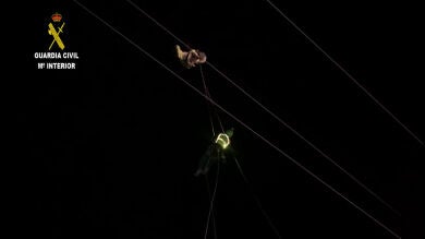 La Guardia Civil ha rescatado a un hombre que quedó atrapado a 40 metros de altura en unos cables de alta tensión en el paraje de Loma del Gato de Almuñécar (Granada). La víctima quedó atrapada durante horas tras aterrizar en los cables con un parapente.