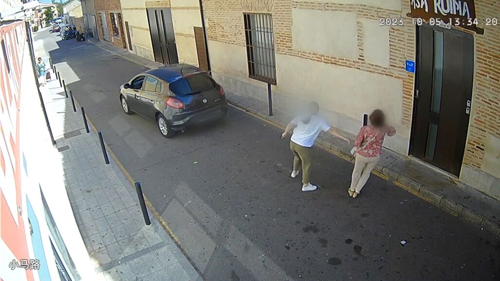 La Guardia Civil trata de localizar a las personas que este jueves, 5 de octubre, robaron el reloj con el método del 'abrazo cariñoso' a una anciana en Nava del Rey, Valladolid. El suceso, que ocurrió en torno a la 1 de la tarde, fue grabado por la cámara de vigilancia de un comercio de la localidad. En el vídeo se ve cómo la mujer pasea ayudada por una muleta cuando una joven se le acerca y le pregunta algo con insistencia, mientras un coche está parado al final de la calle.
