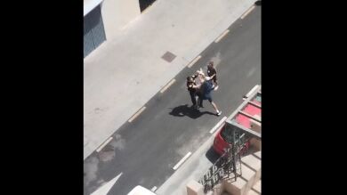 “En ese momento le pedí que me mostrara el bolso, pero no los tenía ahí. Detecto que tiene unos bultos bajo la blusa, pero se niega a sacarlos y se tira sobre mí al suelo y se pone a gritar. En ese momento aparece un hombre con una navaja y empieza a amenazarme”, relata el vigilante.