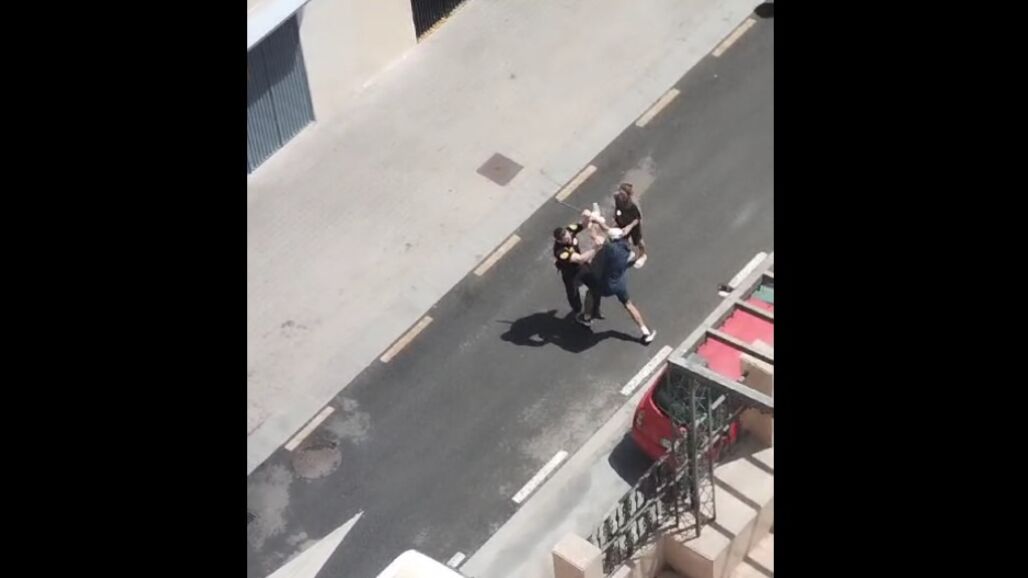 Tal como se aprecia en las imágenes que se han difundido a través de las redes sociales, el vigilante se ve obligado a hacer uso de la porra de defensa para desarmarlo. “Tiré la navaja a un basurero cercano para que no tuviera acceso a ella y evitar que alguien pueda sufrir algún daño. A la mujer la agarré del brazo porque quería huir con los productos, aún ocultos en el torso”, asegura Javier Romero.