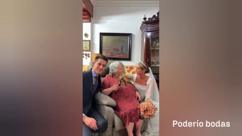 El video, compartido en redes sociales por la empresa organizadora del evento, Poderío Bodas, se ha hecho viral en redes sociales y ha conquistado a todos los usuarios. Una escena enternecedora, que transmite la esencia del amor y la familia. En las imágenes se ve como la pareja, aún vestidos de novios, se bajan del coche y entran en la casa de la abuela Rocío. Ella los esperaba emocionada, vestida con su mejor atuendo, como sí hubiera ido al enlace y al verlos entrar, no pudo contener las lágrimas ni los halagos: “¡Qué guapísima estás!”, repetía entre abrazos.