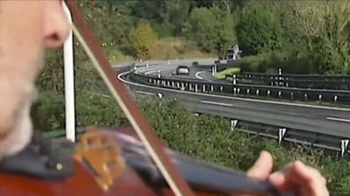El violinista lleva cinco años con su acción reivindicativa: tocar su violín frente a la autopista, para conseguir la instalación de paneles acústicos. Ante la armoniosa música emitida por el violín de Joseba, la Diputación ha decidido responder, pero no precisamente con la instalación de paneles antirruido. La diputación ha multado al violinista con 2.000 euros.