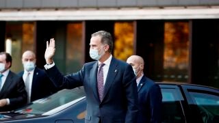 El monarca saludó al público nada más salir del coche y, a continuación, a las autoridades, sin mantener ningún contacto con los medios de comunicación que esperan en el exterior para preguntarle sobre el encuentro con su padre.