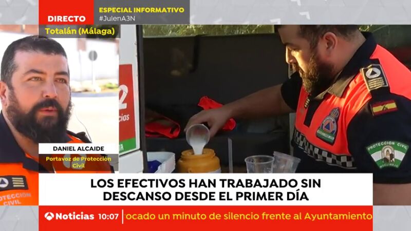 Carlos Núñez habla con Daniel Alcaide, coordinador de los voluntarios de Protección Civil que han colaborado en el rescate de Julen: "A pesar del desgraciado final estamos bastante bien... ha sido bastante largo, con las dificultades del terreno, los días pasan y los cuerpos se cansan, las horas de descanso no son las que deberían...".