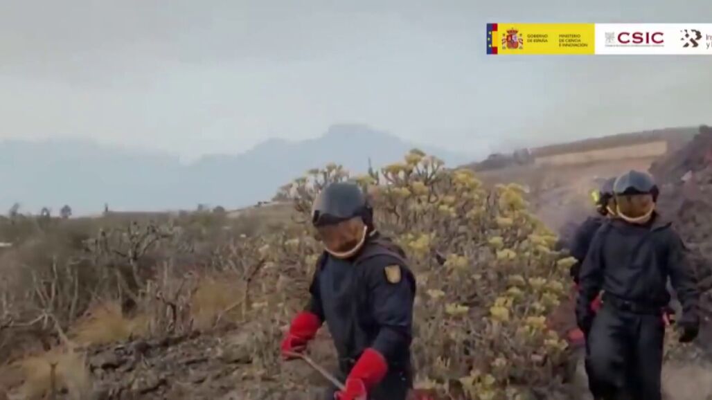 Los científicos se encuentran muy cerca de la lava, con temperaturas a 1.000 grados, aunque a veces se enfría; baja la temperatura. Para ello utilizan trajes especiales que aguantan las altas temperaturas de la lava.