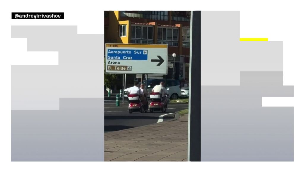 @andreykrivashov fue testigo de una de estas imprudencias ocurrida en uno de los accesos más concurridos a la localidad de Los Cristianos. Varios de estos vehículos, conducidos por turistas, circulan por la rotonda, invaden la carretera circulando entre los coches y llegan incluso a hacerlo en sentido contrario. En un momento determinado invaden la mediana para cruzar al otro lado de la vía. Uno de los vehículos se queda atascado en los jardines que separan dos carriles. Lo hacen con dos personas sobre el cada uno de estos scooters y a gran velocidad. Alarmado por esta situación, este usuario titula el vídeo como "Welcome to the jungle, welcome to Tenerife!" haciendo una crítica a la situación de indefensión en la que se ven los vecinos de la zona al tener que convivir con estas situaciones casi a diario.