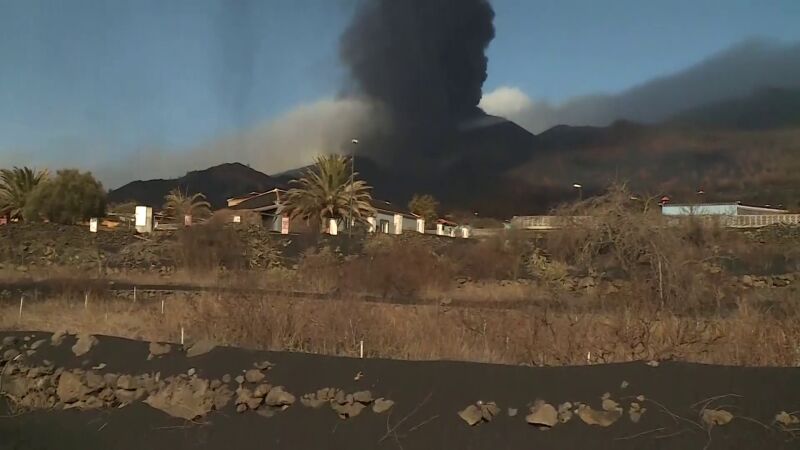 Es la primera vez que se puede acceder a un punto tan cercano desde la erupción el pasado domingo. Antena 3 Noticias ha podido entrar en esta zona afectada y allí ha captado imágenes del desolador paisaje. Los piroclastos son de un grosos mayor y sobre el fuego del volcán se eleva una enorme columna de humo negro que cubre el cielo y logra extenderse por toda Cumbre Vieja y el mar.