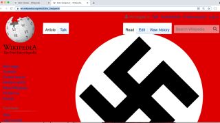La imagen de la esvástica ha tomado protagonismo en Wikipedia en las últimas horas. No ha sido por interés de la plataforma, sino por un ataque informático. Este pirateo borró el contenido de algunas entradas de la plataforma y, en su lugar, aparecía un fondo de página rojo con el símbolo de la esvástica.