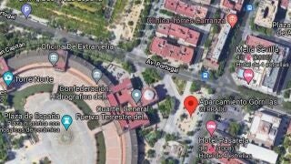 Google Maps ha reconocido esta zona de aparcamiento gestionado de forma ilegal que se encuentra muy próxima a la famosa Plaza de España de Sevilla. La práctica de los 'gorrillas' ha aumentado en muchos lugares de España por culpa de la pandemia.