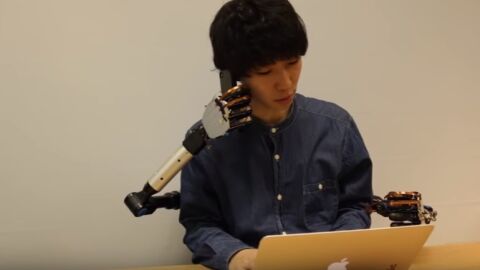 Una empresa japonesa ha inventado un dispositivo que permite tener dos brazos extra gracias a una mochila colocada en la espalda y que se manejaría con la pierna.