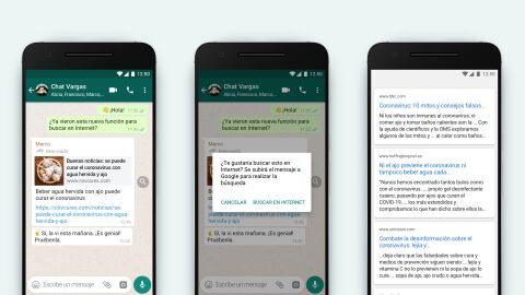 Esta nueva función tiene como objetivo "ayudar a que las personas encuentren resultados sobre las noticias u otras fuentes de información del contenido recibido", asegura WhatsApp.