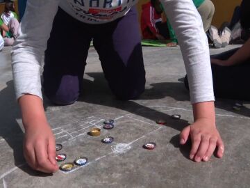 Fútbol Regresa el fútbol chapas al patio de un colegio en Sevilla: "Las intercambian luego en el parque"
