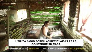 La casa mide nueve metros de ancho por ocho de largo y está enteramente construida con botellas de vidrio.