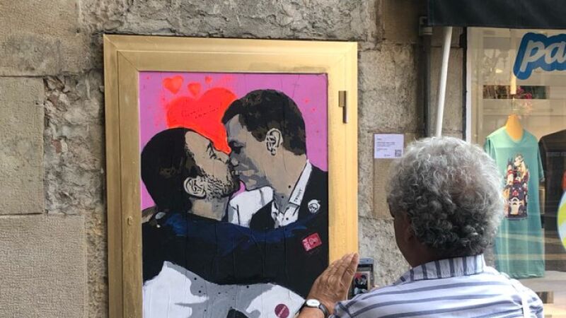 El artista ya realizó una obra similar que también se pudo ver en Barcelona y que retrataba un acalorado beso entre los expresidentes Mariano Rajoy y Carles Puigdemont.