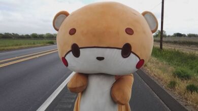 'Bearsun', el oso de peluche gigante que recorre más de 600 kilómetros andando